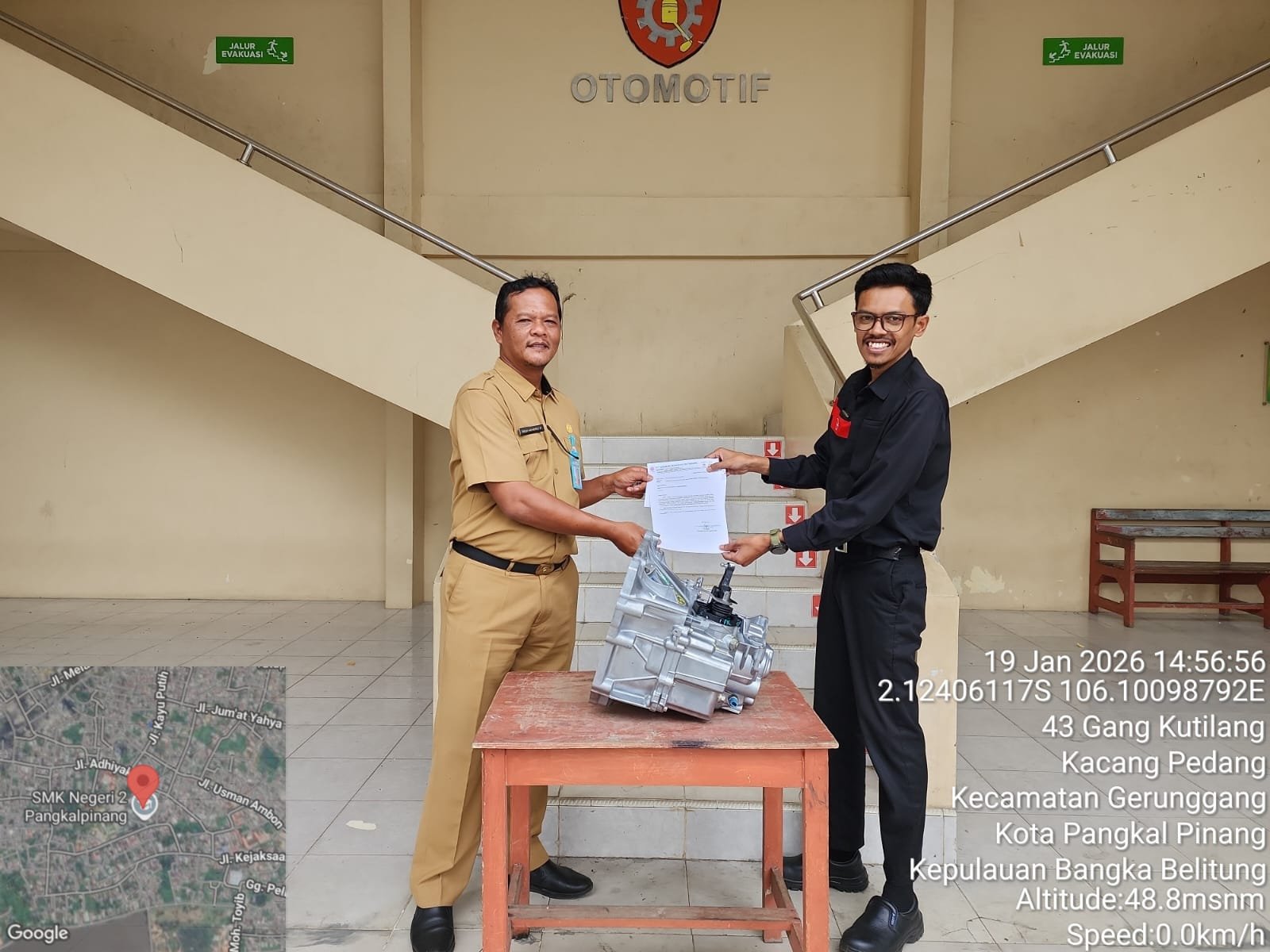 Penyerahan bantuan dari pihak Indomobil Plaza Pangkalpinang diserahkan oleh Bapak Tri Irawan selaku Workshop Head dan diterima oleh Bapak Dedi Hendro Prasetyo, S.T selaku wakasek bidang humas dan disaksikan oleh siswa dan guru Konsentrasi Keahlian Otomotif.